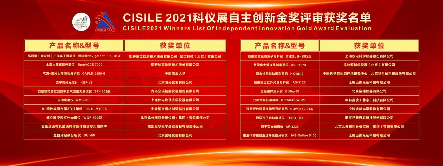 cisile2021科仪展自立立异金奖获奖名单