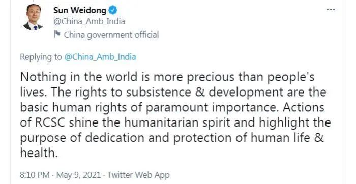 图为中国驻印度大年夜使孙卫东社交网站推文截图