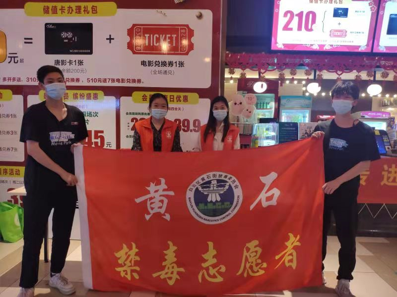 黄石街在唐德片子院(白云汇店)开展禁毒鼓吹教导活动。