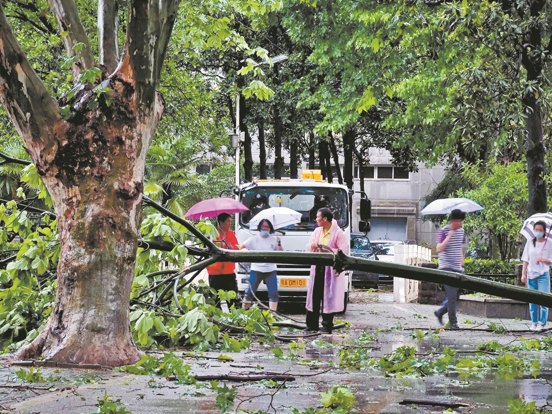 武昌一小区两棵大年夜树被吹倒 楚天都会报纵目新闻记者 宋枕涛 摄