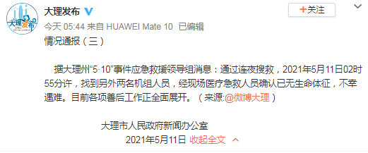 大年夜理州“5·10”事故应急救援引导组消息:经由过程连夜搜救