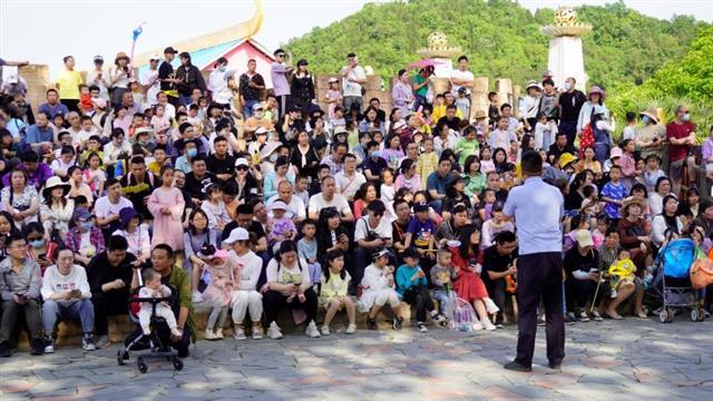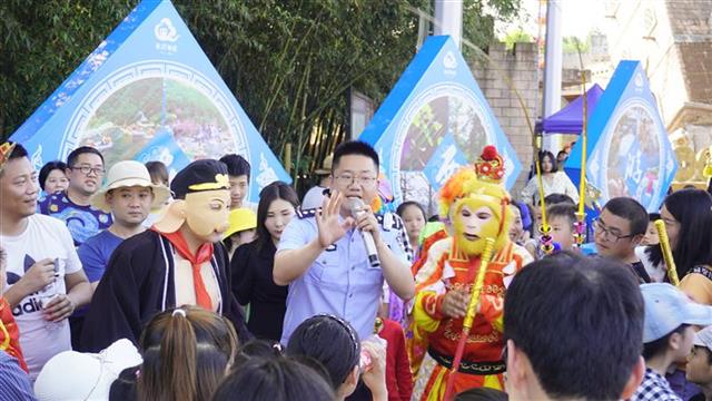 舒明在西纪行公园向旅客解说电诈案例和应对步伐
