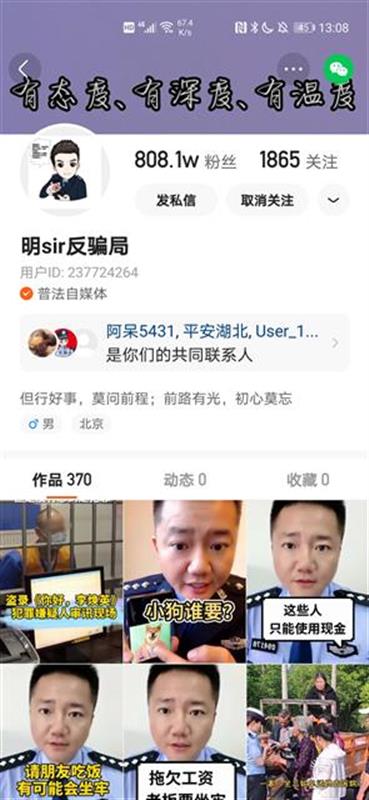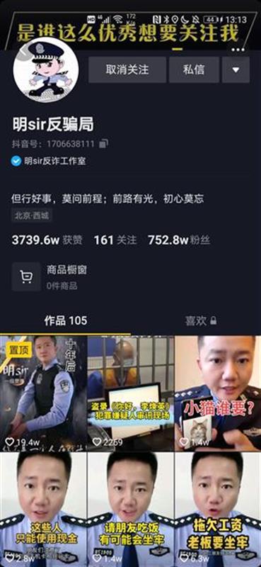 是最早打仗短视频、全网粉丝最多的防骗夷易近警。