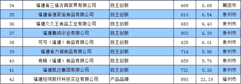 福建圣农成长株式会社品牌代价100.51亿元。还有共计42家参评的企业品牌代价达到5亿元以上。