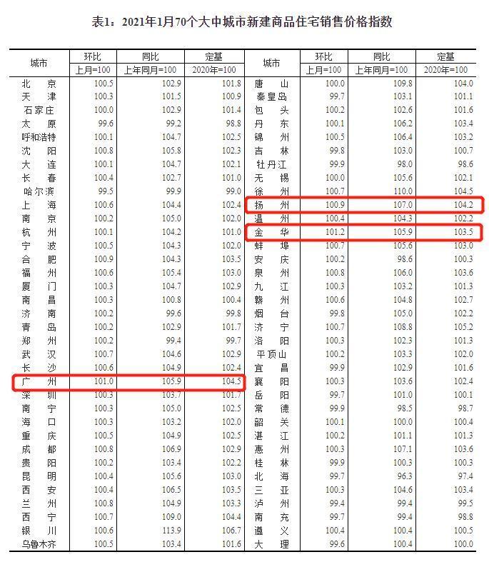 《每日经济新闻》记者注意到,广州成为一线城市新房价格涨幅之首,但金华才是1月份领涨全国的城市,环比涨幅达到1.2%、同比涨5.9%;扬州、武汉、蚌埠、济宁、合肥等城市同环比涨幅紧随其后,值得注意的是,长三角城市占据较多席位。