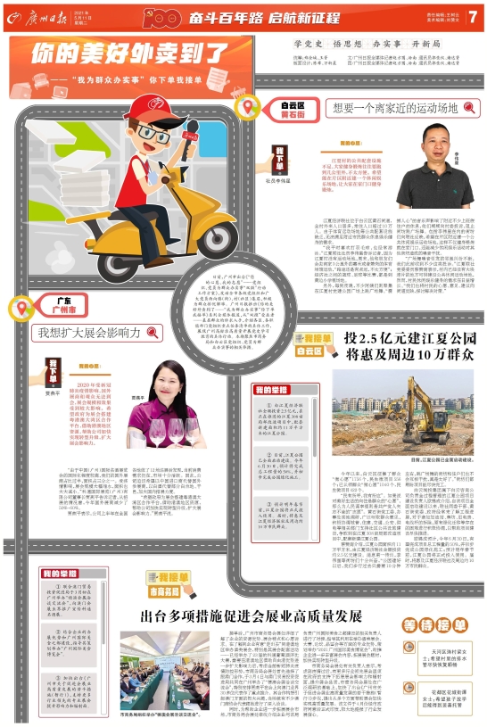 积极为群众排忧解难。广州日报推出《你的美好外卖到了——“我为群众办实事”你下单我接单》系列全媒体报道。
