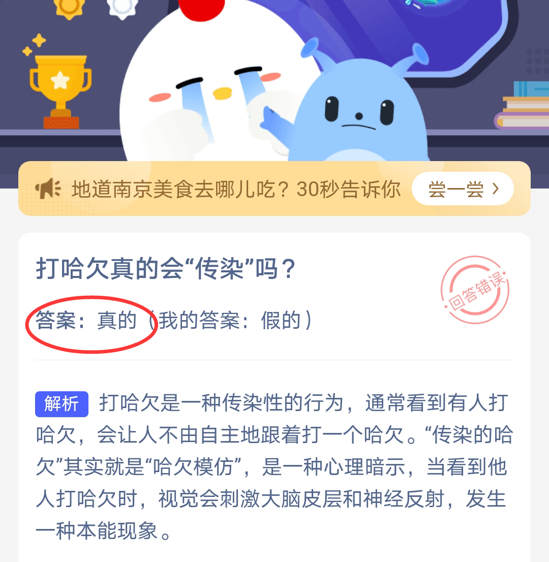 蚂蚁庄园小讲堂2021年5月11日今日谜底汇总打哈欠真的会“熏染”吗?信托很多玩家都不知道这个谜底