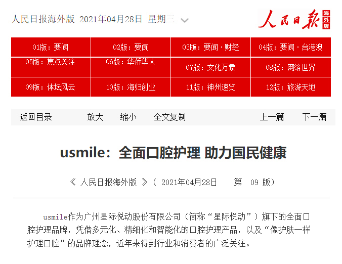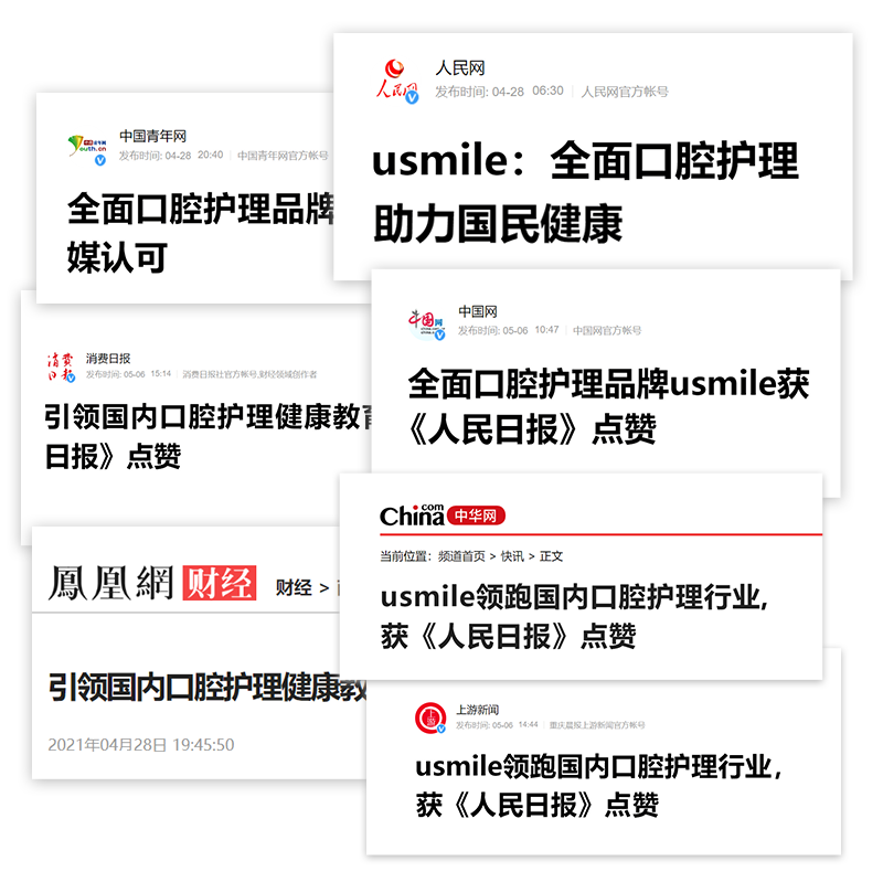 近日,《人夷易近日报》点赞了周全口腔照料护士品牌usmile在海内口腔照料护士教导上的凸起体现,报道一发出,迅速吸引了人夷易近网、中国网、中华网、中国青年网等媒体的广泛关注。