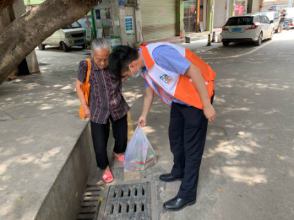 网格员又小心翼翼地扶着白叟一步步的安然到家