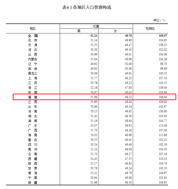 福建男性占比51.68%