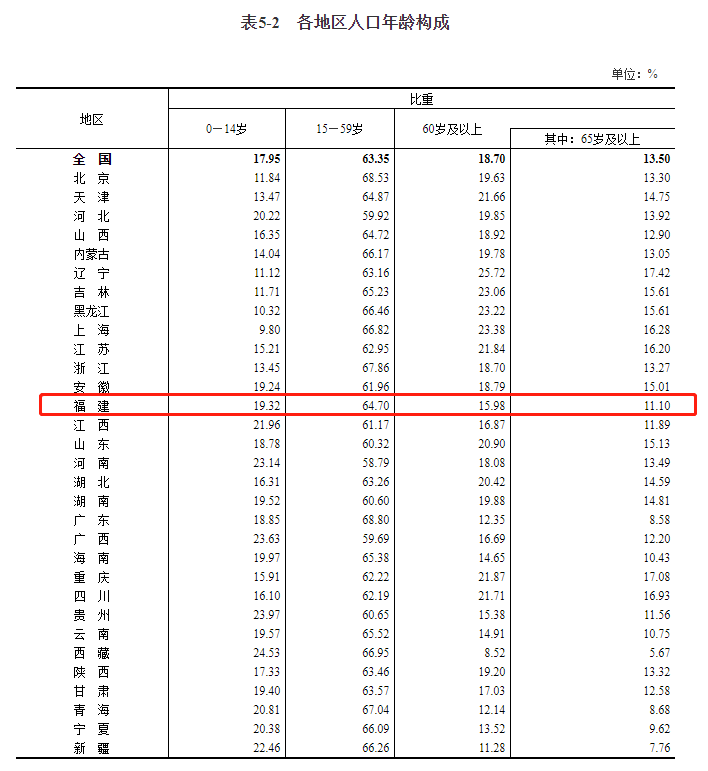 福建15—59岁人口比重为64.7%