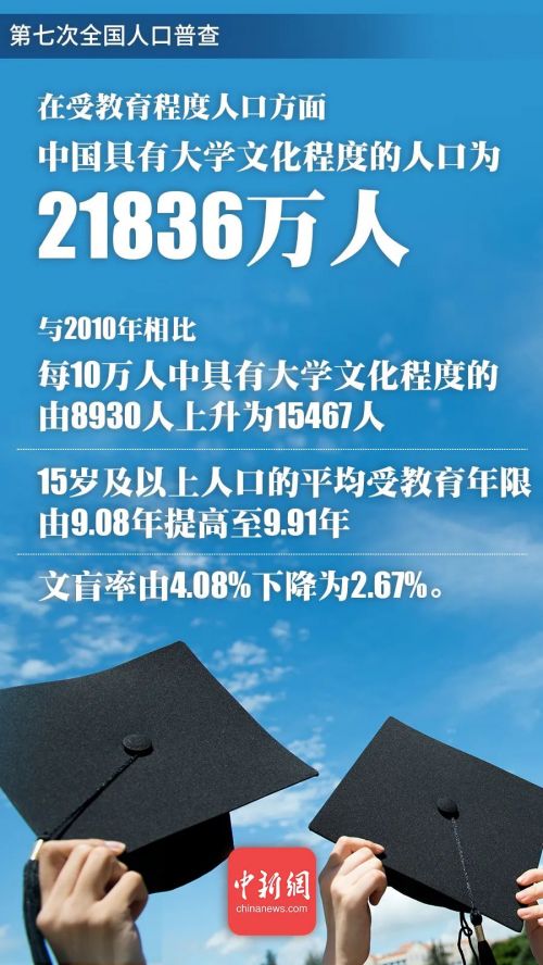 具有大年夜学文化程度的人口为21836万人。与2010年比拟。