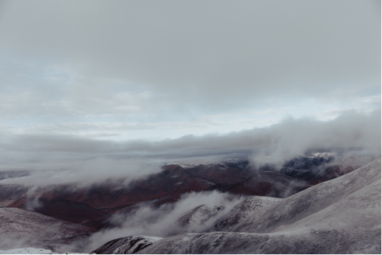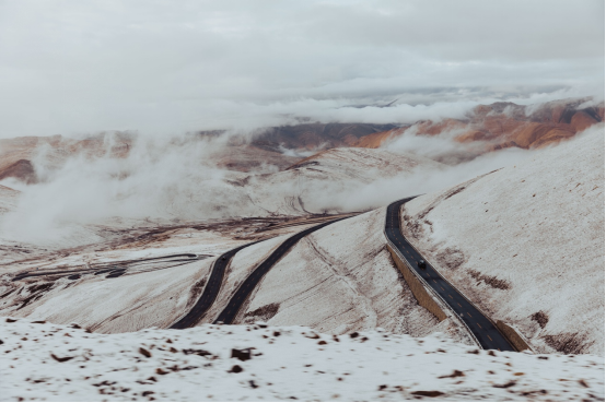 和珠峰国家公园内108拐、海拔5200米的加吾拉山口上的冰雪路面等