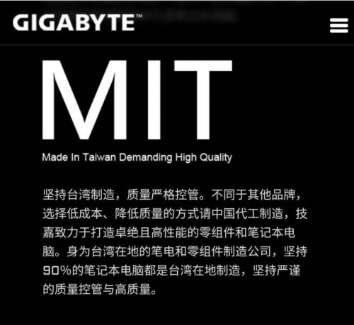 所谓技嘉坚持90%的条记本电脑由(中国)台湾当地制造。