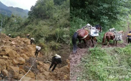 输送基站铁塔材料的历程。该村子只有20多户人家。