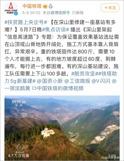 在深山里修筑一座基站有多灾?基站扶植 有人家 山顶 深山 十三五 白云深处 焦点访谈 电信普遍办事 基建狂魔 蚂蚁迁居331182时政快报时政快报