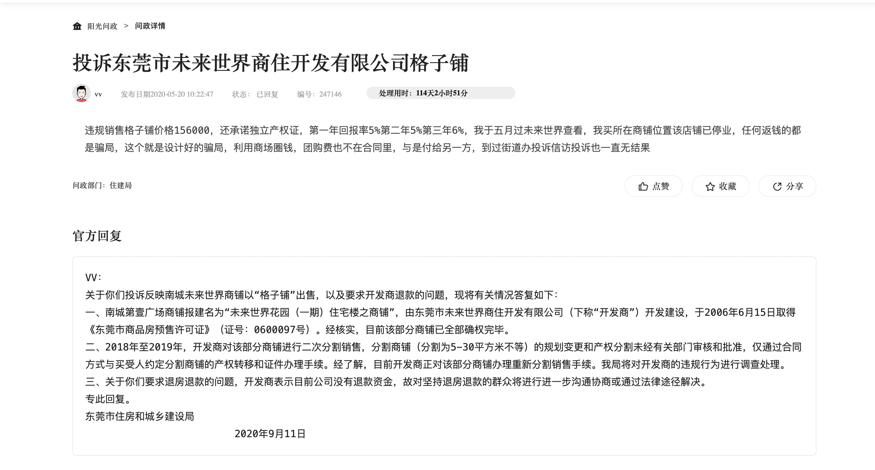 东莞市住房和城乡扶植局曾回覆称。