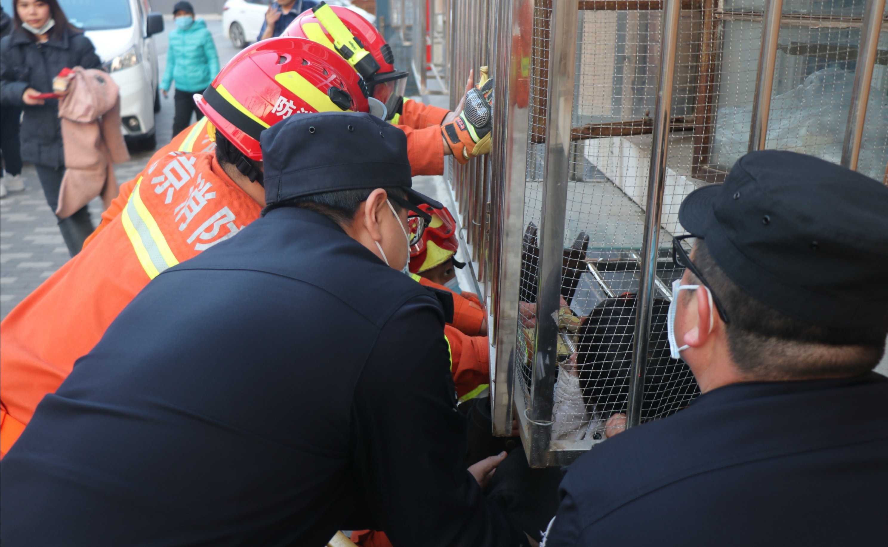 2月22日17时11分,北京门头沟区消防救援支队接总队119指挥中心调度称,门头沟区东辛房街道某小区,有一名女孩头部卡在楼外一层防盗窗里,急需救助。支队立即调派永定消防救援站1车7人赶赴现场。