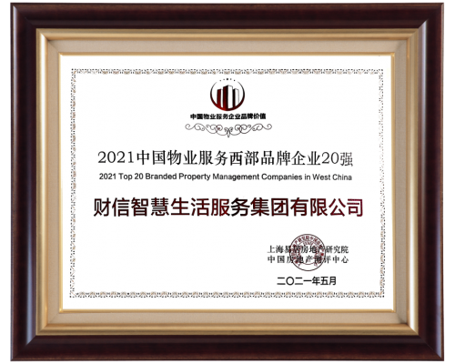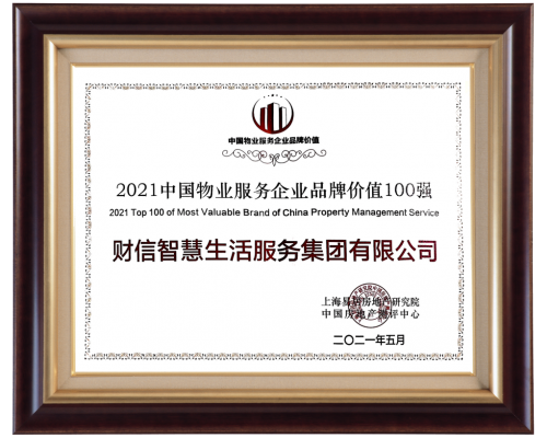 财信聪明办事荣膺“2021中国物业办事企业品牌代价100强”、“2021中国物业办事西部品牌企业20强”荣誉