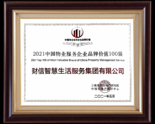 凯发网娱乐app:品牌价值凸显!财信智慧服务荣膺2021中国物业服