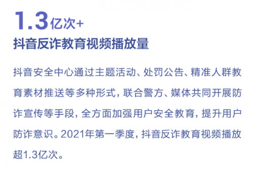 抖音安然中间宣布了《2021年第一季度收集欺骗管理数据申报》(以下简称“申报”)。申报显示。