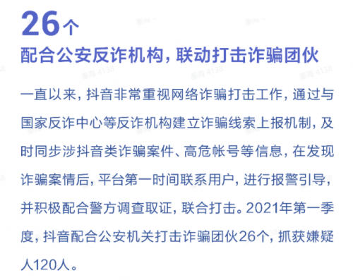 抖音赓续加强用户防诈意识和用户安然意识教导2021年第一季度