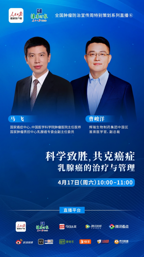国家癌症中间、中国医学科学院肿瘤病院马飞传给与辉瑞生物制药集团中国区首席医学官、副总裁曹峻洋博士合营在人夷易近日报康健客户端、人夷易近日报社康健时报主理的直播节目中做出解答!