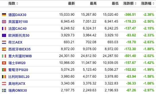 道琼斯指数跌0.1%、标普500指数跌1.04%、纳斯达克指数跌2.55%。