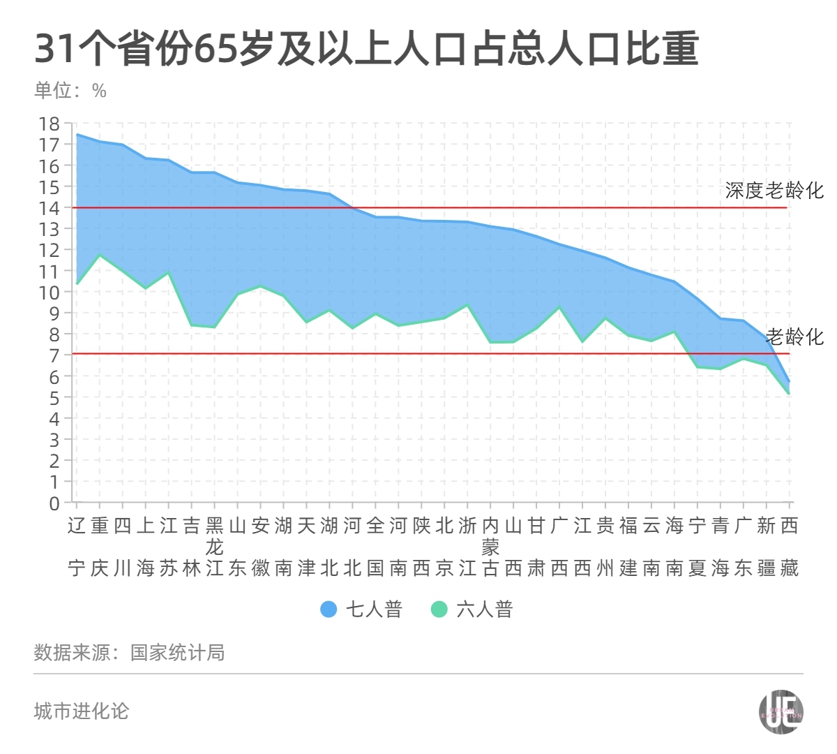 东北三省则呈现了人口规模的削减;老龄化程度上看。