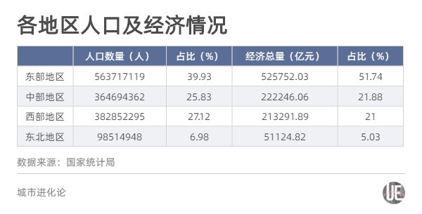 而中部、西部和东北地区均体现为人口占连大年夜于经济占比。