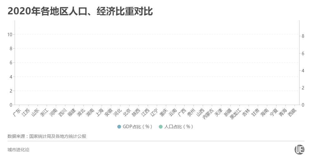 有广东、江苏、山东、浙江、福建、湖北、上海、北京、重庆、内蒙古、天津10个省份的经济总量占连大年夜于(即是)人口总量占比。