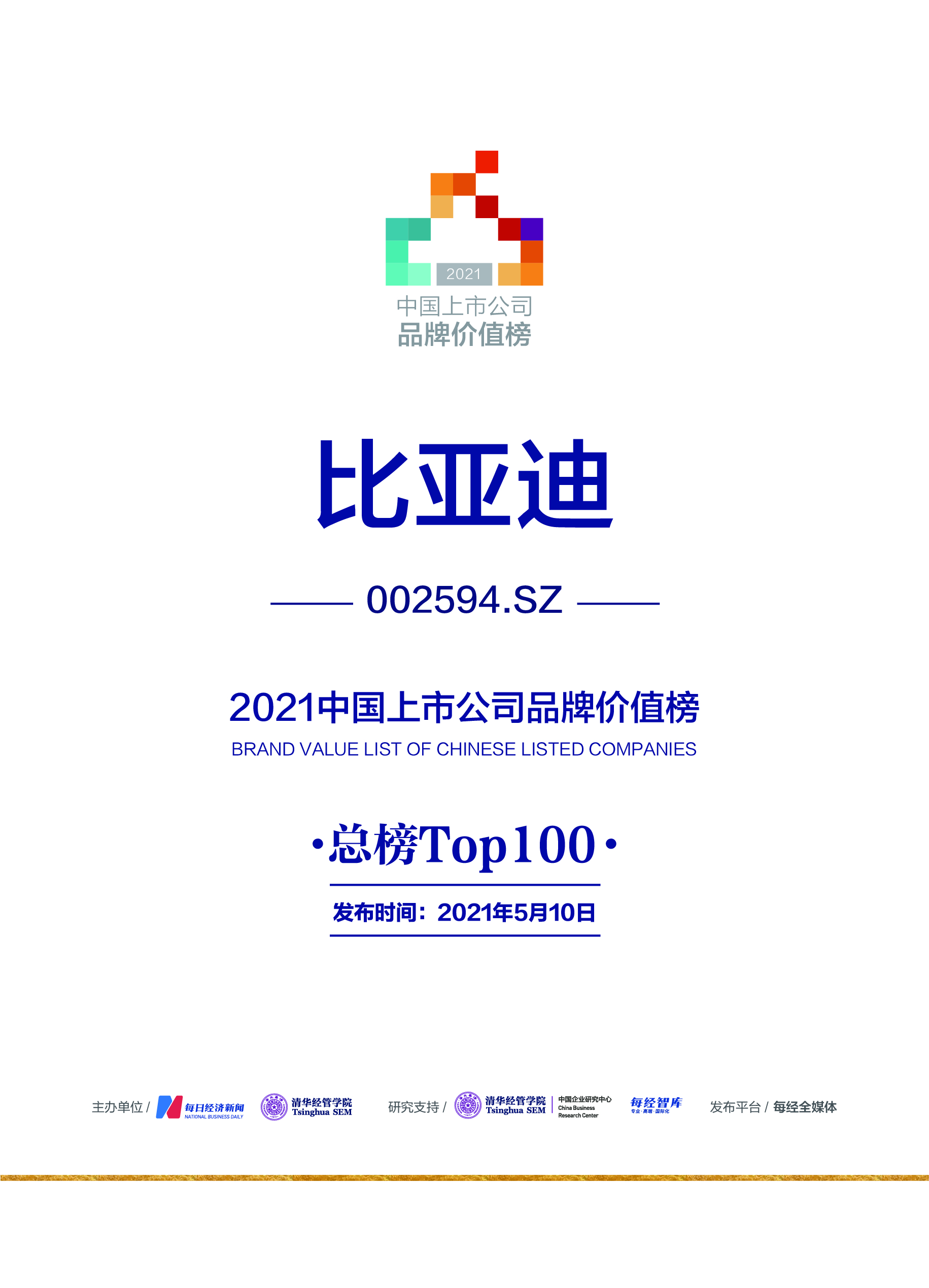 比亚迪也登上了外洋榜top50和生气愿望榜top100