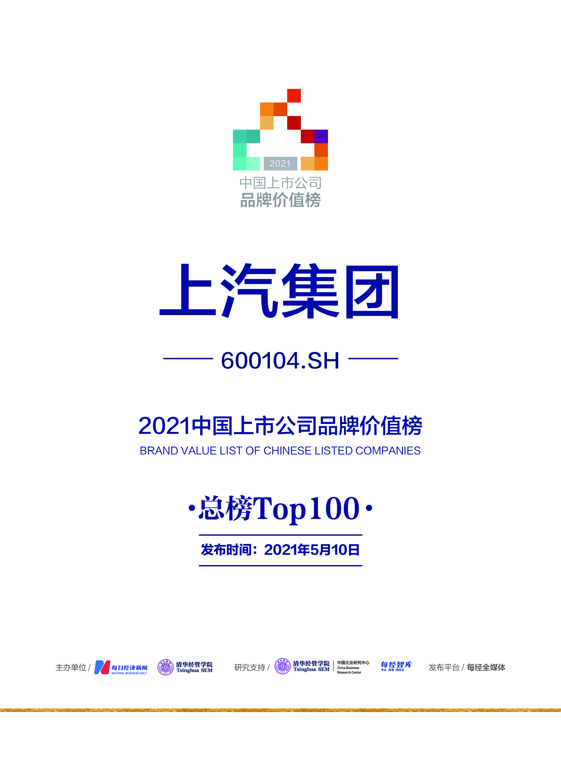 上汽集团凭借3680亿元的品牌代价位居总榜top100第6名