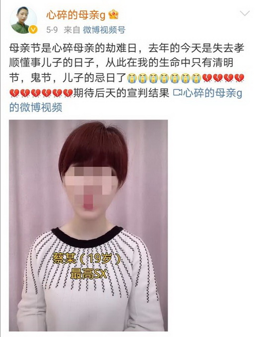 盛天逸母亲葛女士发微博说:母亲节对心碎的母亲来说便是灾害日