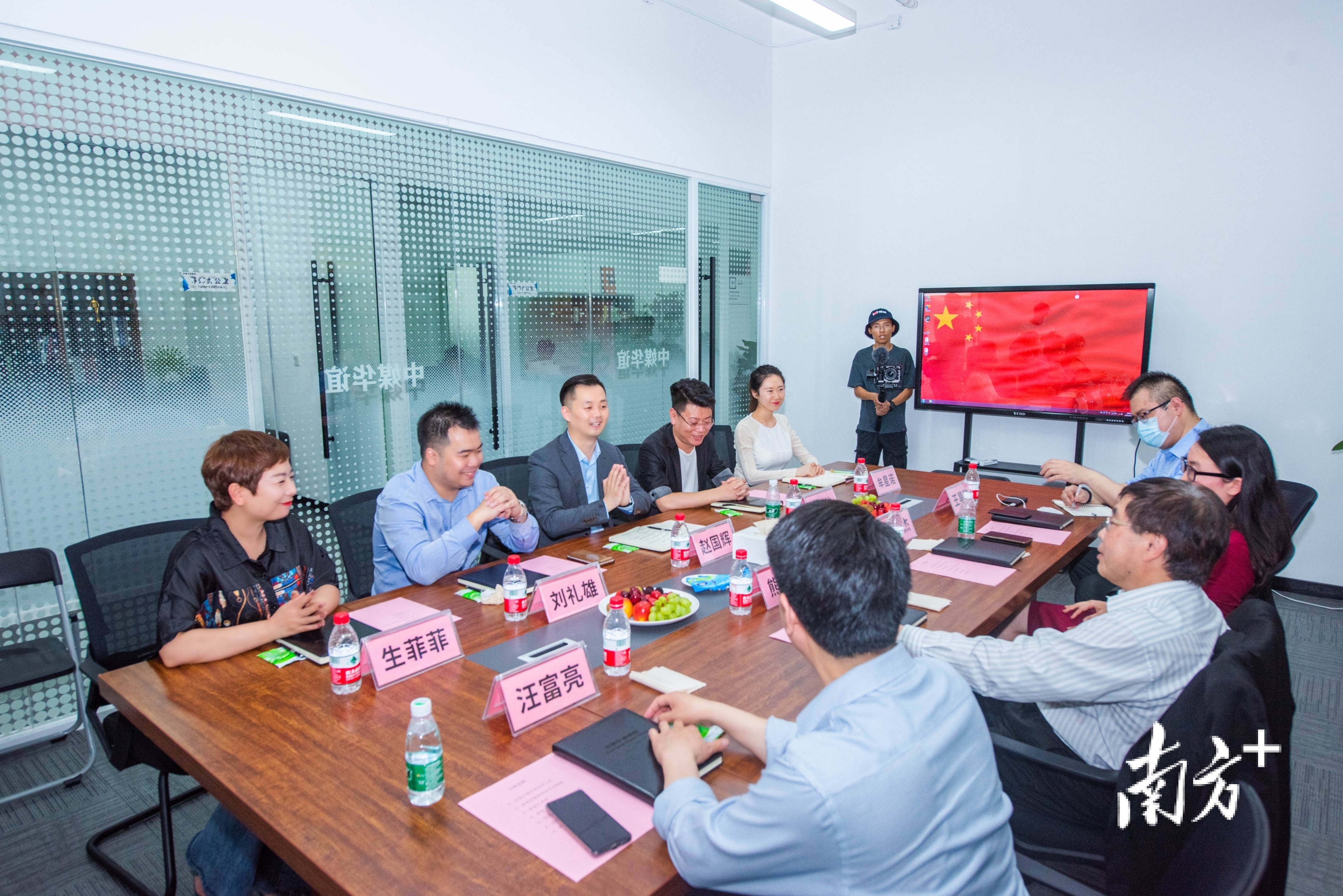 中国工经联履行副会长兼秘书长熊梦等人参不雅了中媒华谊集团的短视频直播人才培训基地在研讨会上