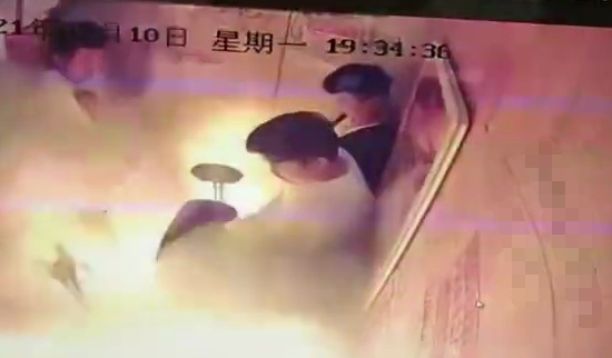 突发电动自行车在电梯内爆燃变乱。