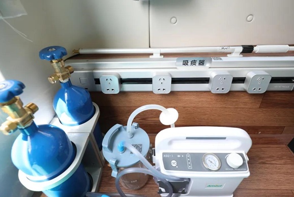 周边还配备了氧气瓶、除颤仪、心电图仪、吸痰器、急救箱等专用设备。“一旦有接种者呈现不良反映。