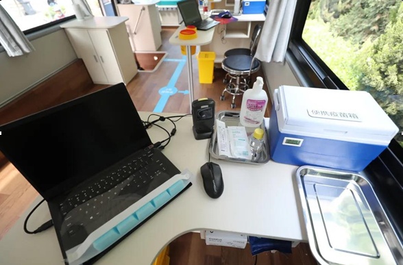 把固定的疫苗接种点搬上了车。