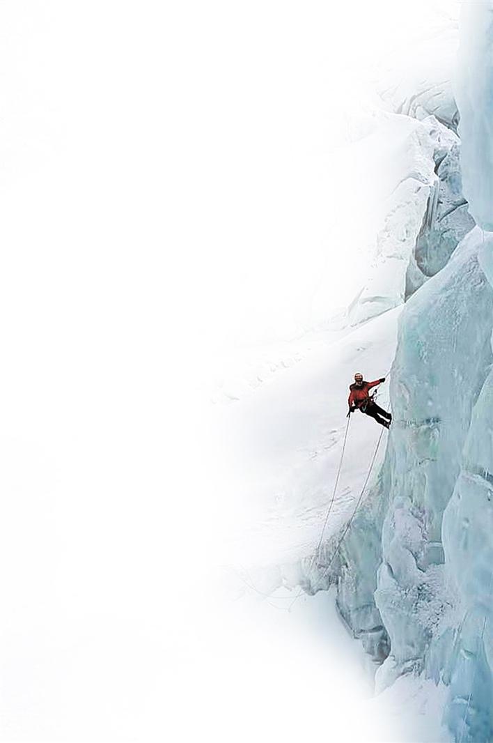 在昆布冰川进行攀冰练习。