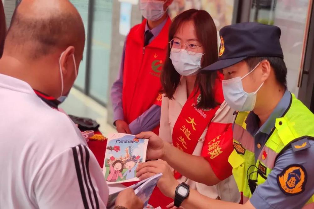 还组织党史鼓吹小队使用“路段沿线血色旅游舆图”“广州革命史迹鼓吹单张”“血色景点故事二维码”向司乘职员先容血色旅游景点