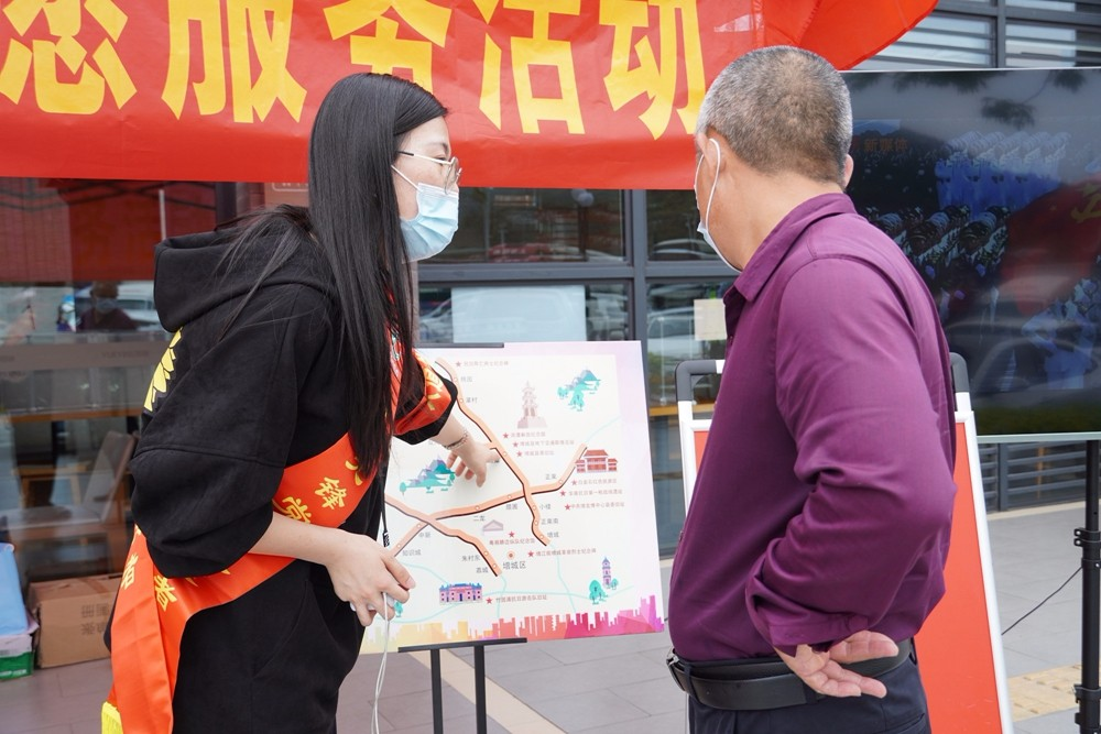 美化公共情况交投实业党总支近30名党员组成自愿办事队前往滘口汽车站为搭客供给出行咨询和路线指引