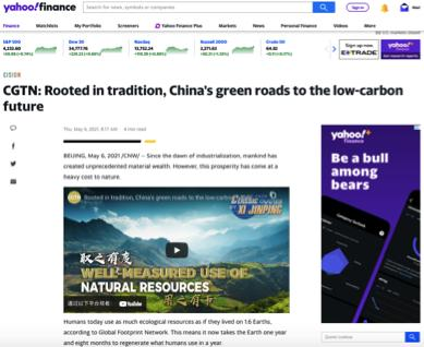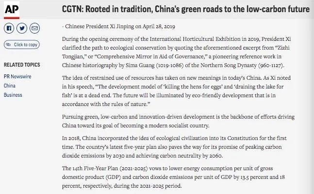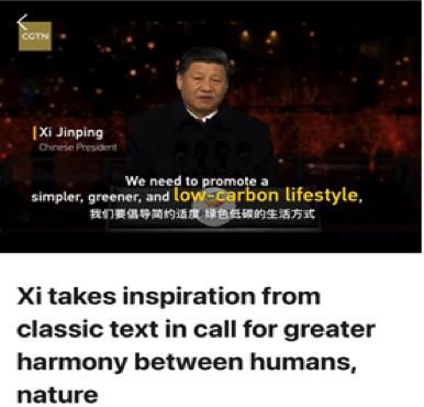 cgtn官网宣布英语特稿《经典中的聪明:中国走向低碳未来的绿色蹊径》