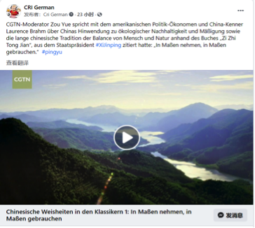 并获得多家华文媒体的转引转载外洋网友留言称:“中国文化蕴含着关于生态文明的大年夜聪明”