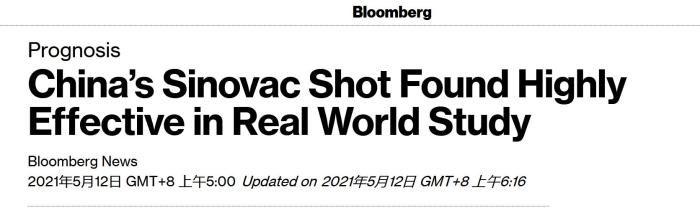 彭博社在题为《中国科兴疫苗在现实天下中异常有效》的报道中指出