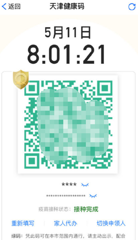 完成疫苗接种的市夷易近出示亮码页面时