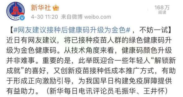 康健码进级为金色”的话题