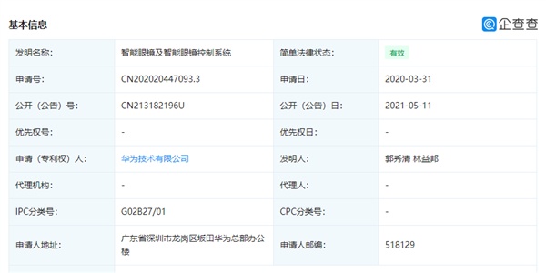 华为技巧有限公司公开了一项“智能眼镜及智能眼镜节制系统”专利。