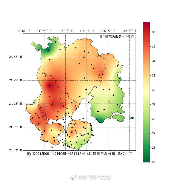 集美后溪镇许庄村子站继续两天盘踞最高气温的榜首