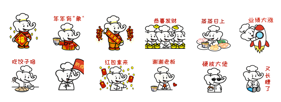 集团于2021年伊始自立策划、原创设计制作了一组新年主题的“新白象”动态微信神色包