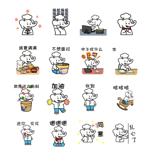 午饭时候可以和同事提议“正午吃什么”的逐日评论争论;石友升职加薪可以发一句“佩服佩服”表示祝贺;听到坏消息发一条“扎心了”;回覆引导乖巧“收到”……白象食物全新推出的这一“萌小象职场记”神色包